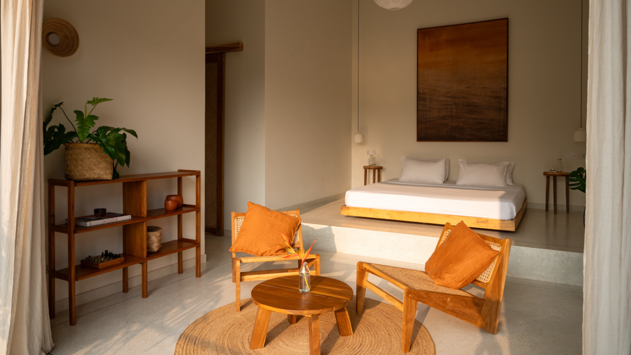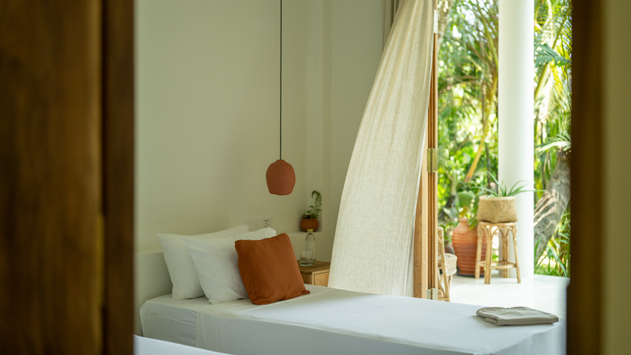You will stay in a minimalist retreat sanctuary nestled in the paddy fields, just minutes from the beach town of Ahangama.